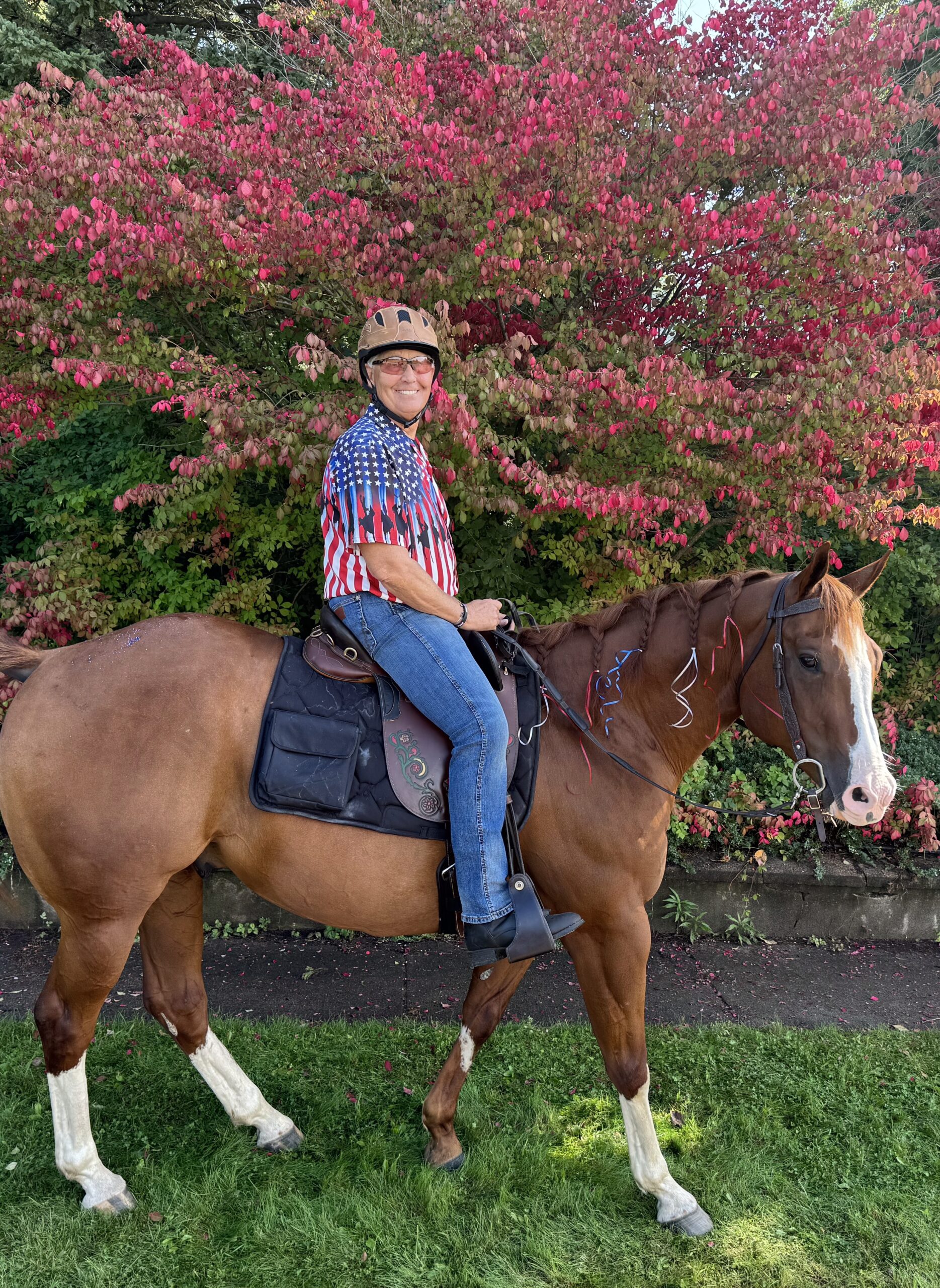 QMA also welcomed Steve in 2024. A disabled veteran, Steve spent many years riding and driving horses until a tragic accident—a car hitting his carriage and horse after a parade—brought that chapter of his life to an end. Now, Steve finds joy and healing as a volunteer at QMA. He helps in the barn, assists with classes, prepares horses for lessons, and enjoys trail rides with us. Steve has shared that being part of QMA has been deeply therapeutic for him, and he truly appreciates the warm, supportive barn atmosphere.